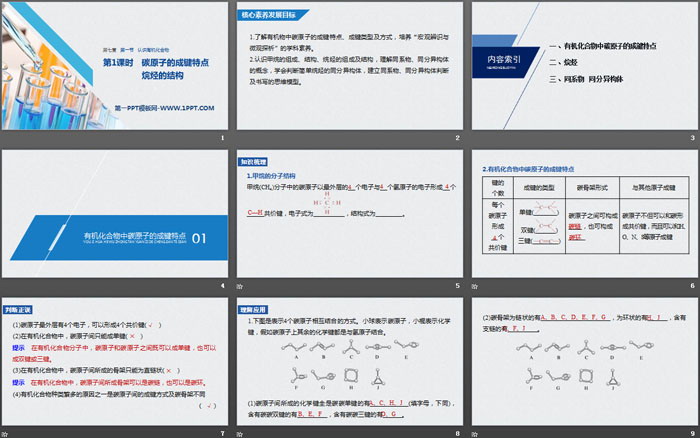 认识有机化合物PPT,第二部分内容:01有机化合物中碳原子的成键特点