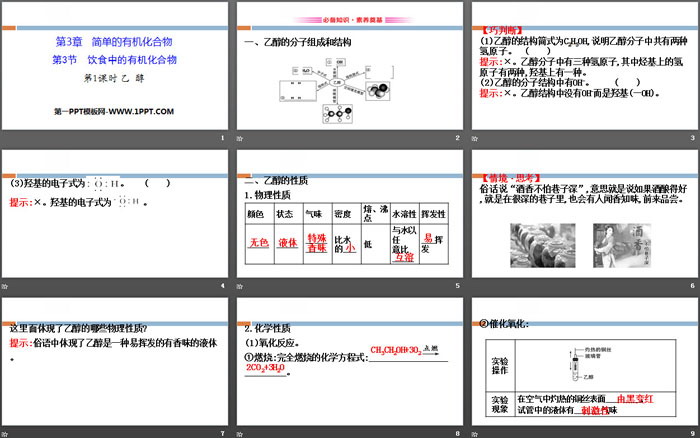 关键词:鲁科版高中化学必修二PPT课件免费下载,饮食中的有机化合物PPT下载,简单的有机化合物PPT下载,乙醇PPT下载,.PPT格式;