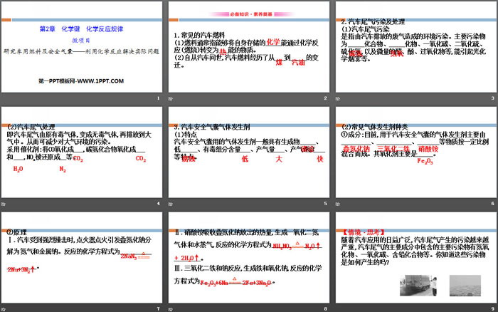 关键词:鲁科版高中化学必修二PPT课件免费下载,微项目研究车用燃料及安全气囊利用化学反应解决实际问题PPT下载,化学键化学反应规律PPT下载,.PPT格式;