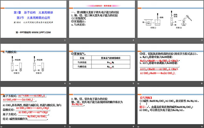 关键词:鲁科版高中化学必修二PPT课件免费下载,元素周期表的应用PPT下载,原子结构元素周期律PPT下载,认识同周期元素性质的递变规律PPT下载,.PPT格式;