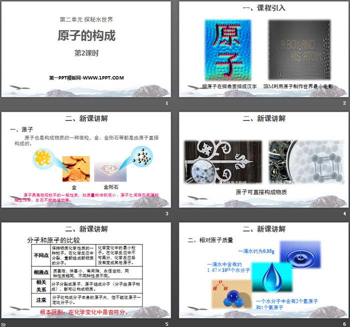 关键词:鲁教版九年级上册化学PPT课件免费下载,原子的构成PPT下载,探秘水世界PPT下载,.PPT格式;