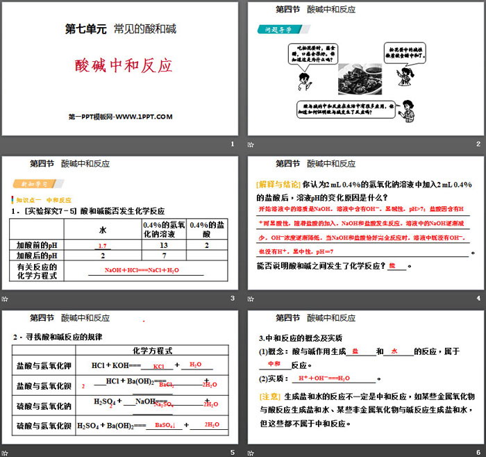 关键词:鲁教版九年级下册化学PPT课件免费下载,酸碱中和反应PPT下载,常见的酸和碱PPT下载,.PPT格式;