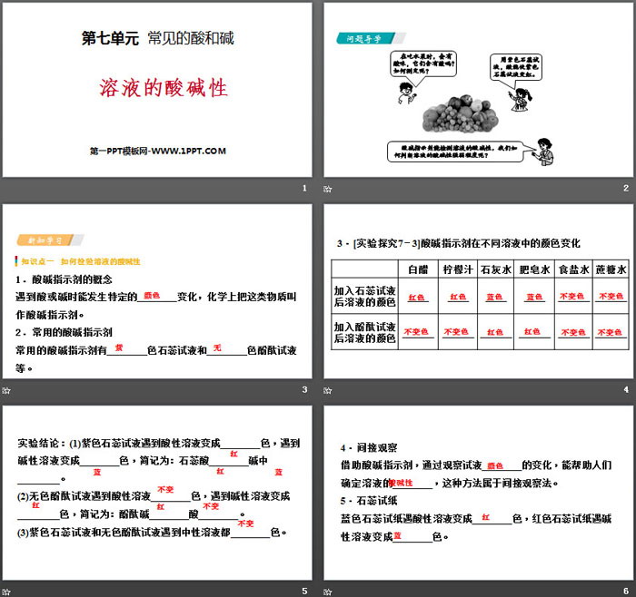 关键词:鲁教版九年级下册化学PPT课件免费下载,溶液的酸碱性PPT下载,常见的酸和碱PPT下载,.PPT格式;