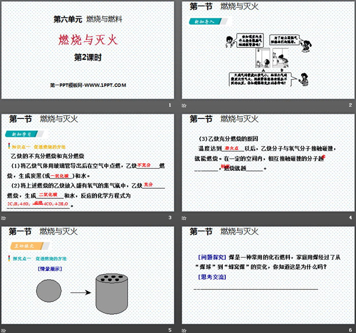 [问题探究] 煤是一种常用的化石燃料,家庭用煤经过了从“煤球”到“蜂窝煤”的变化,你知道这是为什么吗?