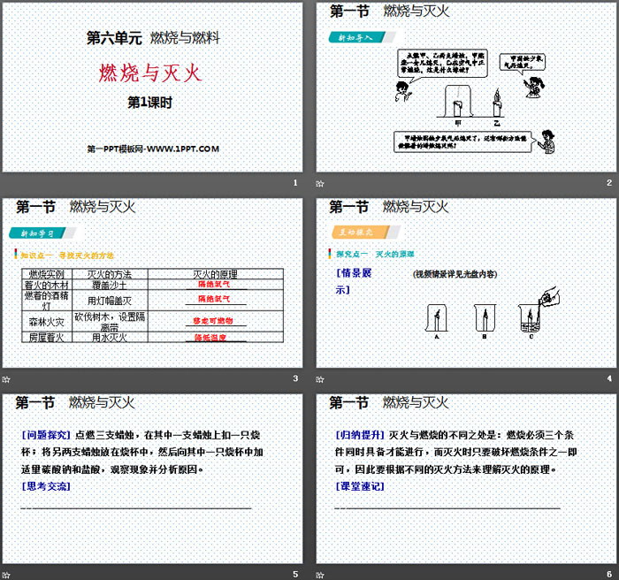 关键词:鲁教版九年级上册化学PPT课件免费下载,燃烧与灭火PPT下载,燃烧与燃料PPT下载,.PPT格式;