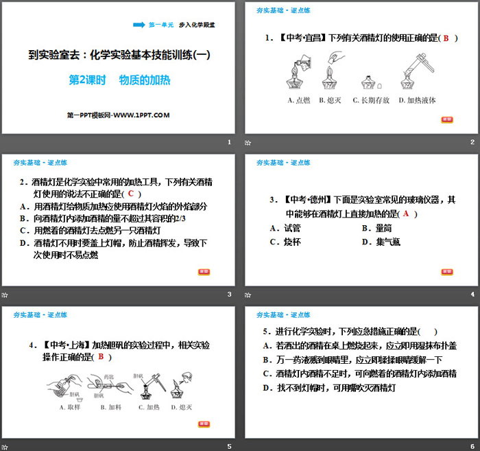 关键词:五四制鲁教版化学八年级全一册PPT课件免费下载,化学实验基本技能训练PPT下载,步入化学殿堂PPT下载,物质的加热PPT下载,.PPT格式;
