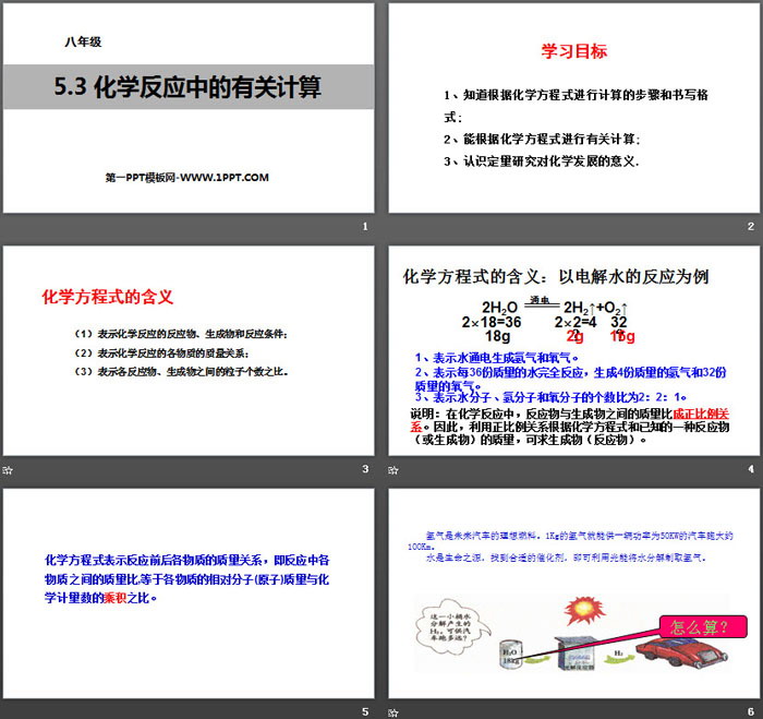 关键词:五四制鲁教版化学八年级全一册PPT课件免费下载,化学反应中的有关计算PPT下载,定量研究化学反应PPT下载,.PPT格式;