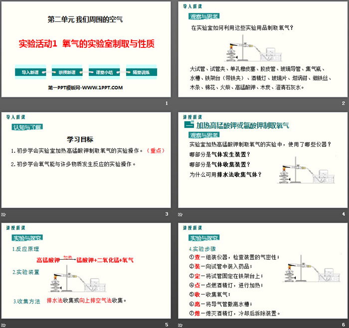1.初步学会实验室加热高锰酸钾制取氧气的实验操作。(重点)