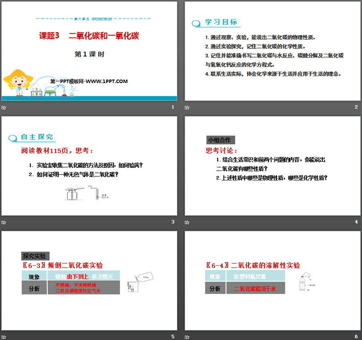 1.通过观察、实验,能说出二氧化碳的物理性质。