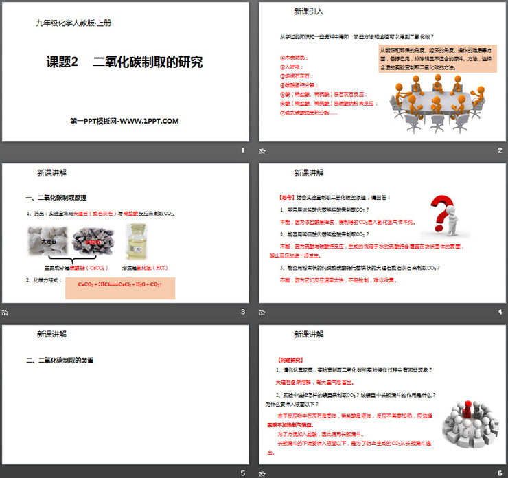 关键词:人教版化学九年级上册PPT课件免费下载,二氧化碳制取的研究PPT下载,碳和碳的氧化物PPT下载,.PPT格式;