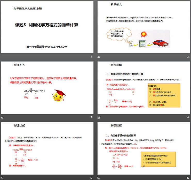 关键词:人教版化学九年级上册PPT课件免费下载,利用化学方程式的简单计算PPT下载,化学方程式PPT下载,.PPT格式;
