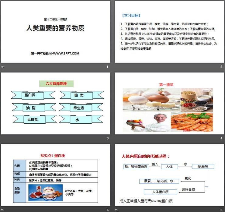 关键词:人教版化学九年级下册PPT课件免费下载,人类重要的营养物质PPT下载,化学与生活PPT下载,.PPT格式;