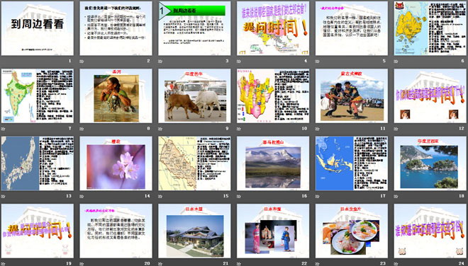 关键词:漫游世界教学课件,到周边去看看教学课件,人教版六年级上册品德与社会PPT课件下载,六年级品德与社会幻灯片课件下载,漫游世界PPT课件下载,到周边去看看PPT课件下载,.PPT格式;