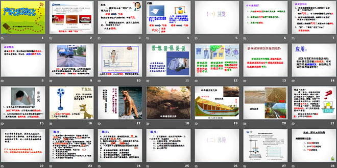 关键词:物态变化教学课件,汽化和液化教学课件,人教版八年级上册物理PPT课件下载,八年级物理幻灯片课件下载,物态变化PPT课件下载,汽化和液化PPT课件下载,.PPT格式;