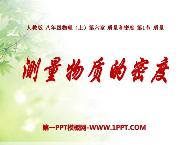 关键词:质量与密度教学课件,测量物质的密度教学课件,人教版八年级上册物理PPT课件下载,八年级物理幻灯片课件下载,质量与密度PPT课件下载,测量物质的密度PPT课件下载,.PPT格式;