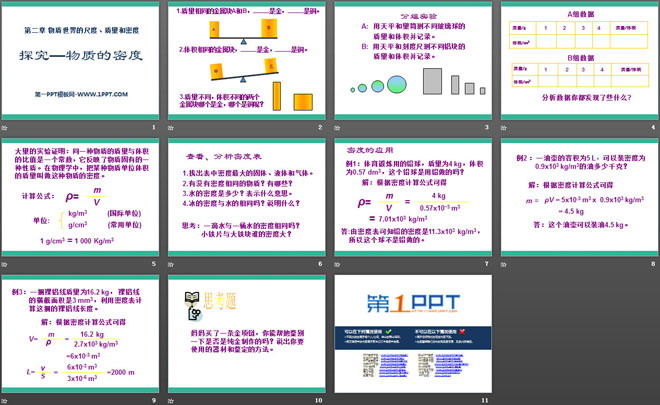 关键词:物质世界的尺度质量和密度教学课件,探究物质的密度教学课件,北师大版八年级上册物理PPT课件下载,八年级物理幻灯片课件下载,物质世界的尺度质量和密度PPT课件下载,探究物质的密度PPT课件下载,.PPT格式;