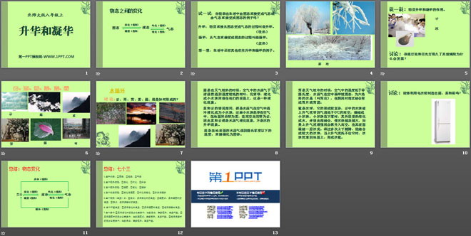 关键词:升华和凝华教学课件,物态及其变化教学课件,北师大版八年级上册物理PPT课件下载,八年级物理幻灯片课件下载,升华和凝华PPT课件下载,物态及其变化PPT课件下载,.PPT格式;