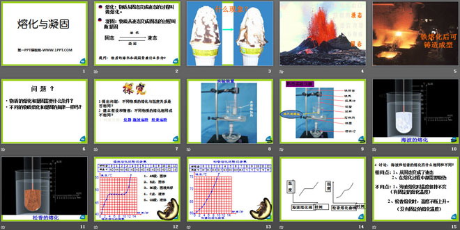 关键词:物态及其变化教学课件,熔化和凝固教学课件,北师大版八年级上册物理PPT课件下载,八年级物理幻灯片课件下载,物态及其变化PPT课件下载,熔化和凝固PPT课件下载,.PPT格式;
