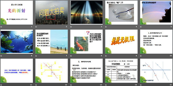 (3)网络、资料查询,有关光的折射的知识、图片等各类信息。看谁收集得多。