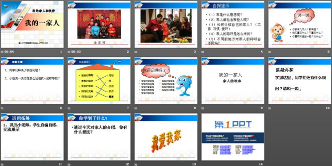 关键词:我的家人和伙伴教学课件,我的一家人教学课件,新人教版一年级下册品德与生活PPT课件,一年级品德与生活幻灯片课件下载,我的家人和伙伴PPT课件下载,我的一家人PPT课件下载,.ppt格式