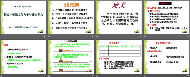 关键词:运动和力教学课件,探究摩擦力的大小与什么有关教学课件,北师大版八年级下册物理PPT课件下载,八年级物理幻灯片课件下载,运动和力PPT课件下载,探究摩擦力的大小与什么有关PPT课件下载,.PPT格式;