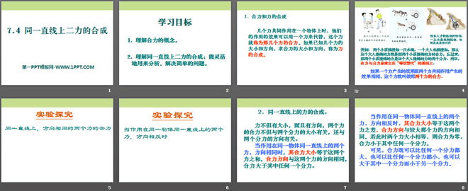 关键词:运动和力教学课件,同一直线上的二力合成教学课件,北师大版八年级下册物理PPT课件下载,八年级物理幻灯片课件下载,运动和力PPT课件下载,同一直线上的二力合成PPT课件下载,.PPT格式;
