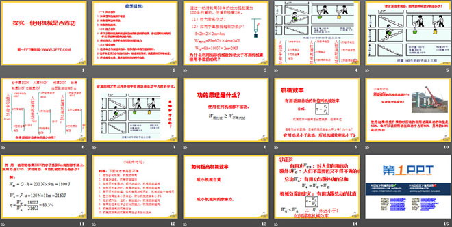 关键词:机械和功教学课件,探究使用机械是否省功教学课件,北师大版八年级下册物理PPT课件下载,八年级物理幻灯片课件下载,机械和功PPT课件下载,探究使用机械是否省功PPT课件下载,.PPT格式;