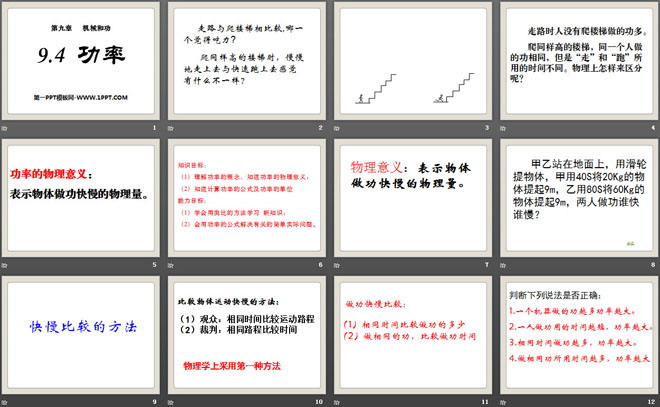 关键词:功率教学课件,机械和功教学课件,北师大版八年级下册物理PPT课件下载,八年级物理幻灯片课件下载,功率PPT课件下载,机械和功PPT课件下载,.PPT格式;