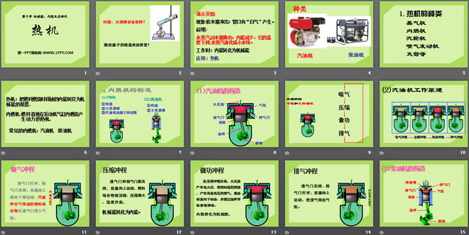 关键词:热机教学课件,机械能内能及其转化教学课件,北师大版九年级上册物理PPT课件下载,九年级物理幻灯片课件下载,热机PPT课件下载,机械能内能及其转化PPT课件下载,.PPT格式;