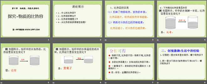 关键词:探究物质的比热容教学课件,机械能内能及其转化教学课件,北师大版九年级上册物理PPT课件下载,九年级物理幻灯片课件下载,探究物质的比热容PPT课件下载,机械能内能及其转化PPT课件下载,.PPT格式;