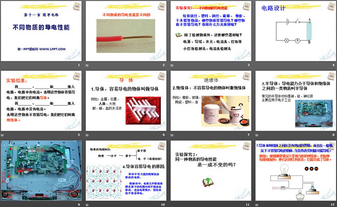关键词:简单电路教学课件,不同物质的导电性能教学课件,北师大版九年级上册物理PPT课件下载,九年级物理幻灯片课件下载,简单电路PPT课件下载,不同物质的导电性能PPT课件下载,.PPT格式;