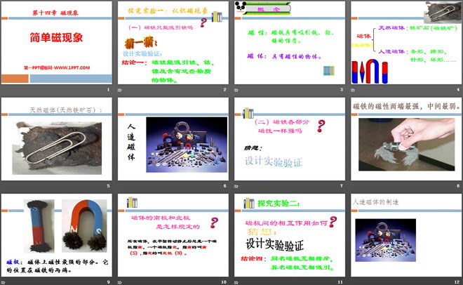 关键词:磁现象教学课件,简单磁现象教学课件,北师大版九年级下册物理PPT课件下载,九年级物理幻灯片课件下载,磁现象PPT课件下载,简单磁现象PPT课件下载,.PPT格式;