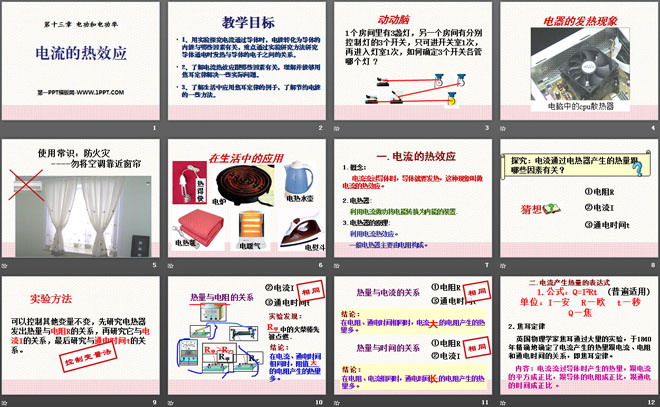 2、了解电流热效应跟哪些因素有关,理解并能够用焦耳定律解决一些实际问题。