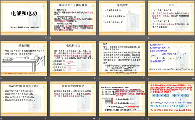 关键词:电功和电功率教学课件,电能和电功教学课件,北师大版九年级下册物理PPT课件下载,九年级物理幻灯片课件下载,电功和电功率PPT课件下载,电能和电功PPT课件下载,.PPT格式;