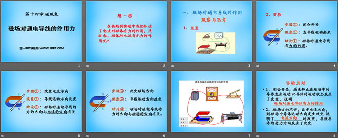 关键词:磁现象教学课件,磁场对通电导线的作用力教学课件,北师大版九年级下册物理PPT课件下载,九年级物理幻灯片课件下载,磁现象PPT课件下载,磁场对通电导线的作用力PPT课件下载,.PPT格式;