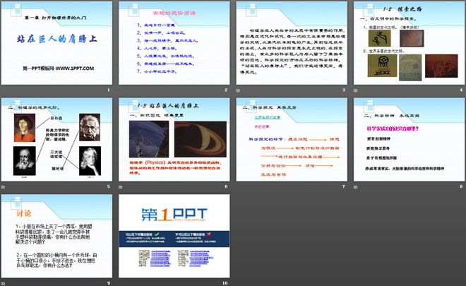 关键词:打开物理世界的大门教学课件,站在巨人的肩膀上教学课件,沪科版八年级全册物理PPT课件下载,八年级物理幻灯片课件下载,打开物理世界的大门PPT课件下载,站在巨人的肩膀上PPT课件下载,.PPT格式;