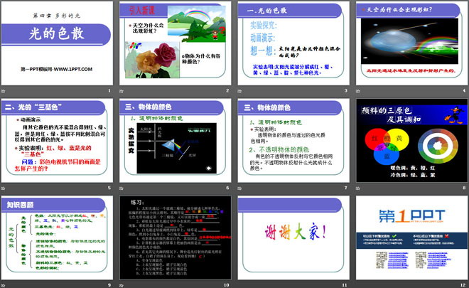 关键词:光的色散教学课件,多彩的光教学课件,沪科版八年级全册物理PPT课件下载,八年级物理幻灯片课件下载,光的色散PPT课件下载,多彩的光PPT课件下载,.PPT格式;