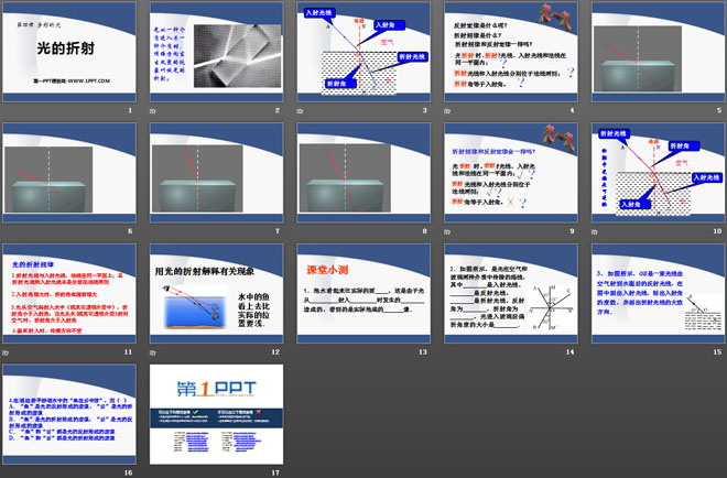 关键词:多彩的光教学课件,光的折射教学课件,沪科版八年级全册物理PPT课件下载,八年级物理幻灯片课件下载,多彩的光PPT课件下载,光的折射PPT课件下载,.PPT格式;