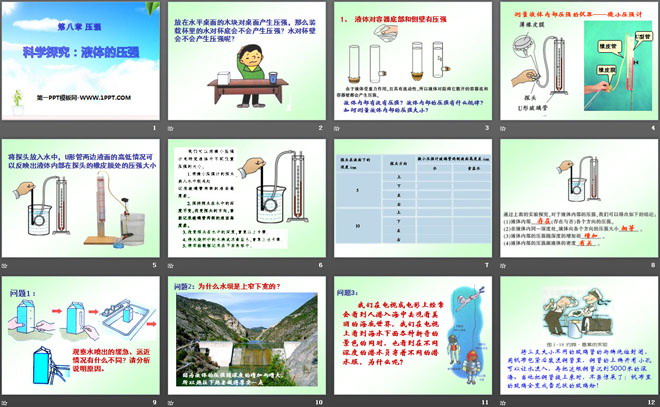 关键词:压强教学课件,科学探究液体的压强教学课件,沪科版八年级全册物理PPT课件下载,八年级物理幻灯片课件下载,压强PPT课件下载,科学探究液体的压强PPT课件下载,.PPT格式;