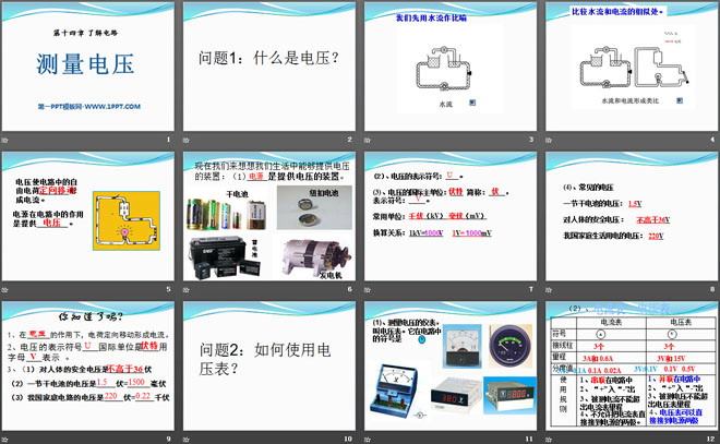 关键词:了解电路教学课件,测量电压教学课件,沪科版九年级全册物理PPT课件下载,九年级物理幻灯片课件下载,了解电路PPT课件下载,测量电压PPT课件下载,.PPT格式;