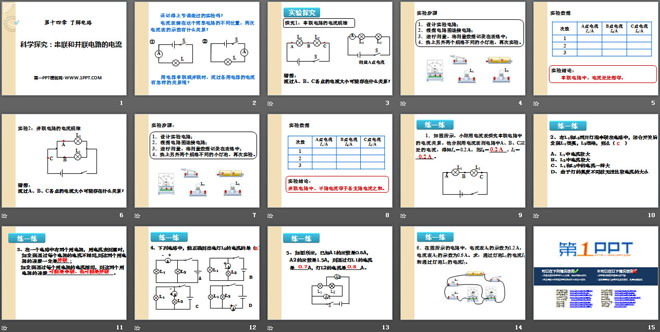 关键词:了解电路教学课件,科学探究串联和并联电路的电流教学课件,沪科版九年级全册物理PPT课件下载,九年级物理幻灯片课件下载,了解电路PPT课件下载,科学探究串联和并联电路的电流PPT课件下载,.PPT格式;