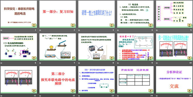 关键词:了解电路教学课件,科学探究串联和并联电路的电流教学课件,沪科版九年级全册物理PPT课件下载,九年级物理幻灯片课件下载,了解电路PPT课件下载,科学探究串联和并联电路的电流PPT课件下载,.PPT格式;