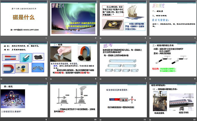 关键词:从指南针到磁浮列车教学课件,磁是什么教学课件,沪科版九年级全册物理PPT课件下载,九年级物理幻灯片课件下载,从指南针到磁浮列车PPT课件下载,磁是什么PPT课件下载,.PPT格式;