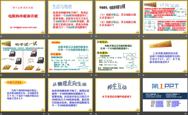关键词:探究电路教学课件,电阻的串联和并联教学课件,沪科版九年级全册物理PPT课件下载,九年级物理幻灯片课件下载,探究电路PPT课件下载,电阻的串联和并联PPT课件下载,.PPT格式;