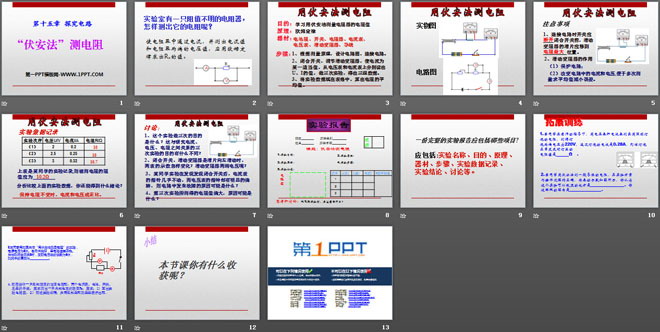 关键词:探究电路教学课件,伏安法测电阻教学课件,沪科版九年级全册物理PPT课件下载,九年级物理幻灯片课件下载,探究电路PPT课件下载,伏安法测电阻PPT课件下载,.PPT格式;