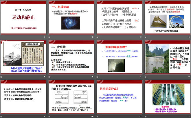 关键词:机械运动教学课件,运动和静止教学课件,鲁教版八年级上册物理PPT课件下载,八年级物理幻灯片课件下载,机械运动PPT课件下载,运动和静止PPT课件下载,.PPT格式;