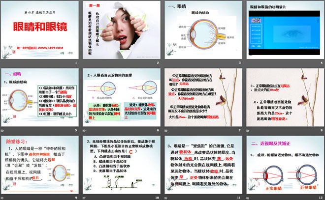 关键词:透镜及其应用教学课件,眼睛和眼镜教学课件,鲁教版八年级上册物理PPT课件下载,八年级物理幻灯片课件下载,透镜及其应用PPT课件下载,眼睛和眼镜PPT课件下载,.PPT格式;