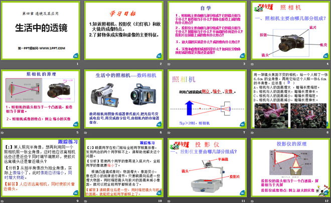 1.知道照相机、投影仪(幻灯机)和放大镜的成像特点。