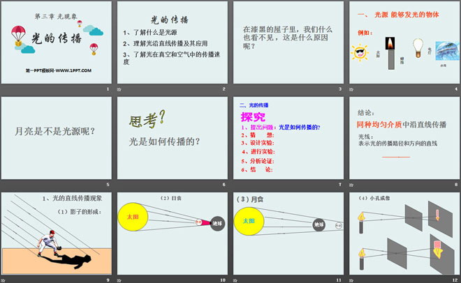 关键词:光现象教学课件,光的传播教学课件,鲁教版八年级上册物理PPT课件下载,八年级物理幻灯片课件下载,光现象PPT课件下载,光的传播PPT课件下载,.PPT格式;