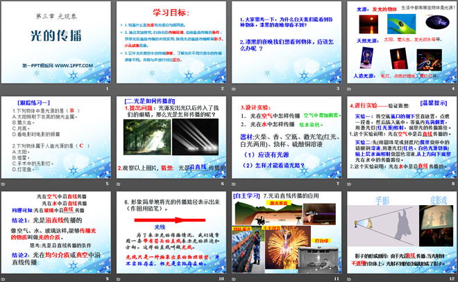 关键词:光现象教学课件,光的传播教学课件,鲁教版八年级上册物理PPT课件下载,八年级物理幻灯片课件下载,光现象PPT课件下载,光的传播PPT课件下载,.PPT格式;